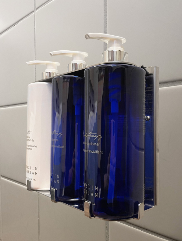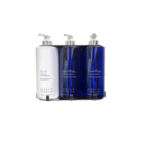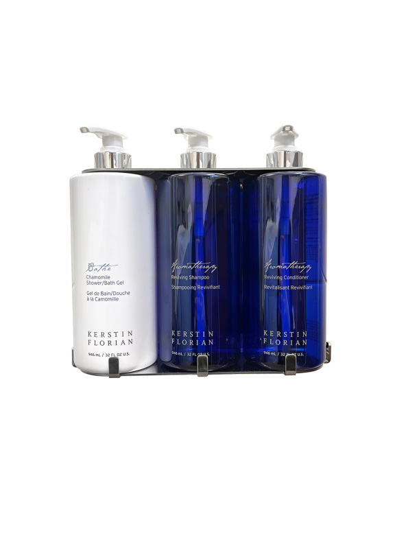 Trippelholder for dusj- og omkledningsrom i rustfritt stål. Tilpasset designen på flaskene på 946 ml.
